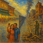 The juxtaposition crystallized something I'd been struggling to articulate: the Fold doesn't just connect two places, it connects two entirely different relationships with reality. Singapore's citizens experience our war as spectacle, safe behind bulletproof glass and international law. We experience their peace as an unreachable paradise, visible but separated by barriers more substantial than mere distance.